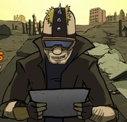 Bob has been shown wearing a Trench coat, blue tinted goggles, combat boots, gloves, a dark blue T shirt and dark brown pants. Bob has also been shown with a red bandana and an ammo belt.