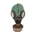 - A gas mask was hanging on the wall. There was a sign next to it that read: 'Is it safe???'.