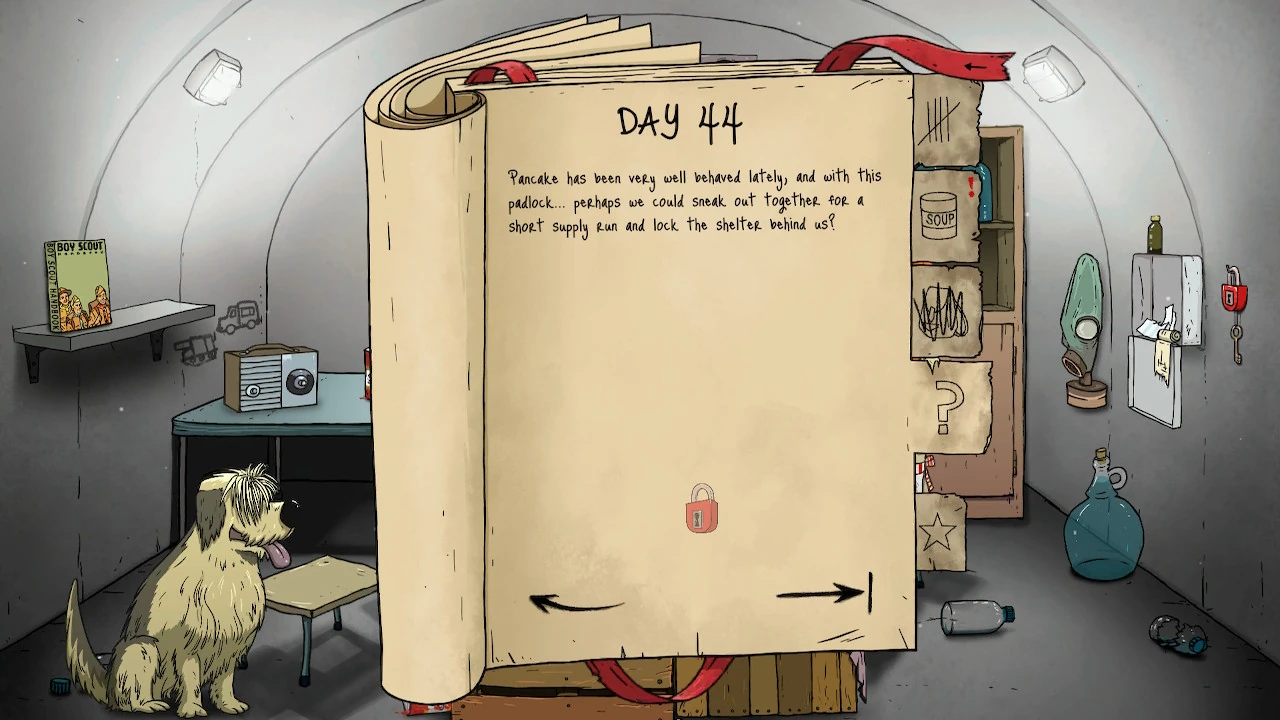 Pancake has been really well behaved lately, and with this padlock... perhaps we could sneak out together for a short supply run and lock the shelter behind us?